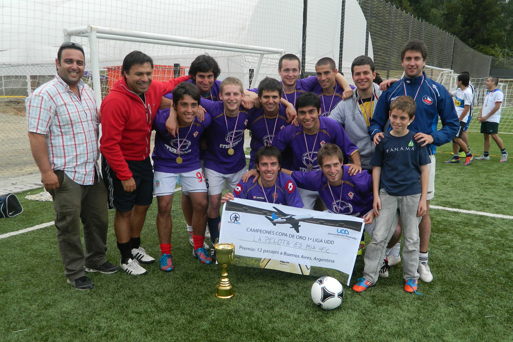 ¡La 1ª Liga UDD finalmente tiene campeón! “La Pelota es Mía” se quedó con la Copa de Oro de este campeonato de futbolito 7×7, además de con el gran premio mayor: pasajes a Buenos Aires para todo el equipo.