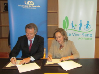 Promover hábitos de vida saludable en la población chilena, mediante la realización de diversas actividades en escuelas, colegios y espacios públicos es el objetivo del convenio de cooperación firmado entre la Universidad del Desarrollo y la Fundación Chile Vive Sano.