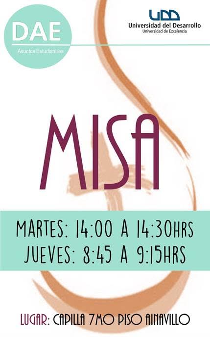 Comencemos el año de la mejor forma, todos invitados el martes 15 de marzo a la misa de inicio año académico para pedir por un excelente 2016, la cual se realizará en el AI 10 (Zócalo Ainavillo) a las 14:00Hrs, junto a nuestro capellán Víctor Pérez.