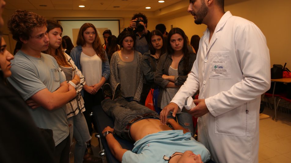 Hubo estaciones de toma de muestra de sangre venosa y punción intramuscular en los laboratorios de Enfermería, un interactivo taller en Odontología, una clase de Anatomía con modernos ecógrafos en Medicina y la presentación de audiología y voz en Fonoaudiología.