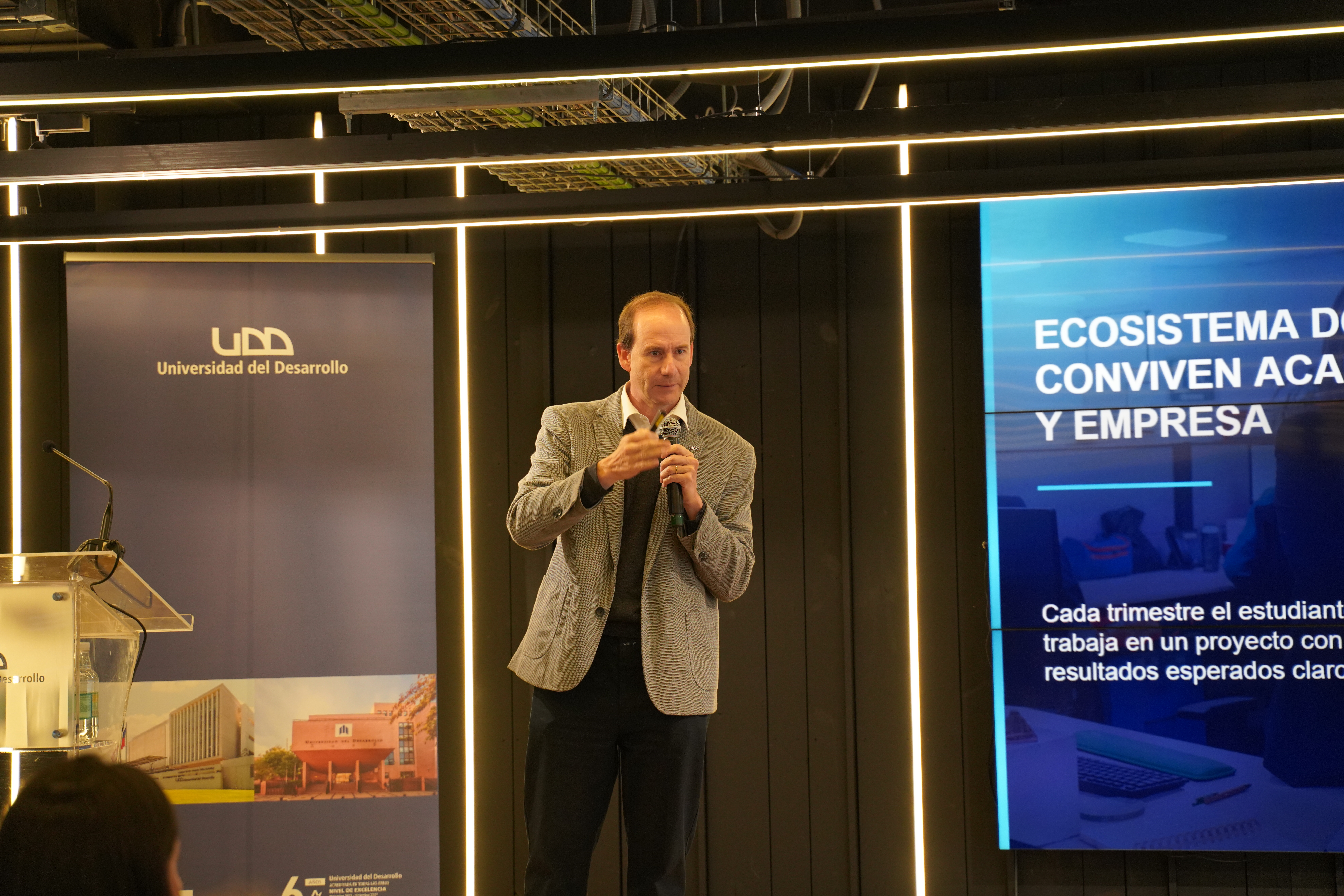 En la actividad -que contó con la participación de autoridades universitarias, académicos, estudiantes y representantes de instituciones colaboradoras- el rector de la Universidad, Federico Valdés, destacó la importancia de impulsar estrategias conectadas con la realidad profesional, orientadas al desarrollo de competencias para el mundo laboral. En ese sentido, expresó que «poder entregar estas competencias y capacidades a nuestros estudiantes, más allá de lo que ofrece el resto del sistema universitario chileno, es un motivo de orgullo. Puedo decir con satisfacción que esto se ha convertido en uno de nuestros sellos distintivos, una forma de hacer las cosas que nos otorga una ventaja competitiva frente al resto del sistema».