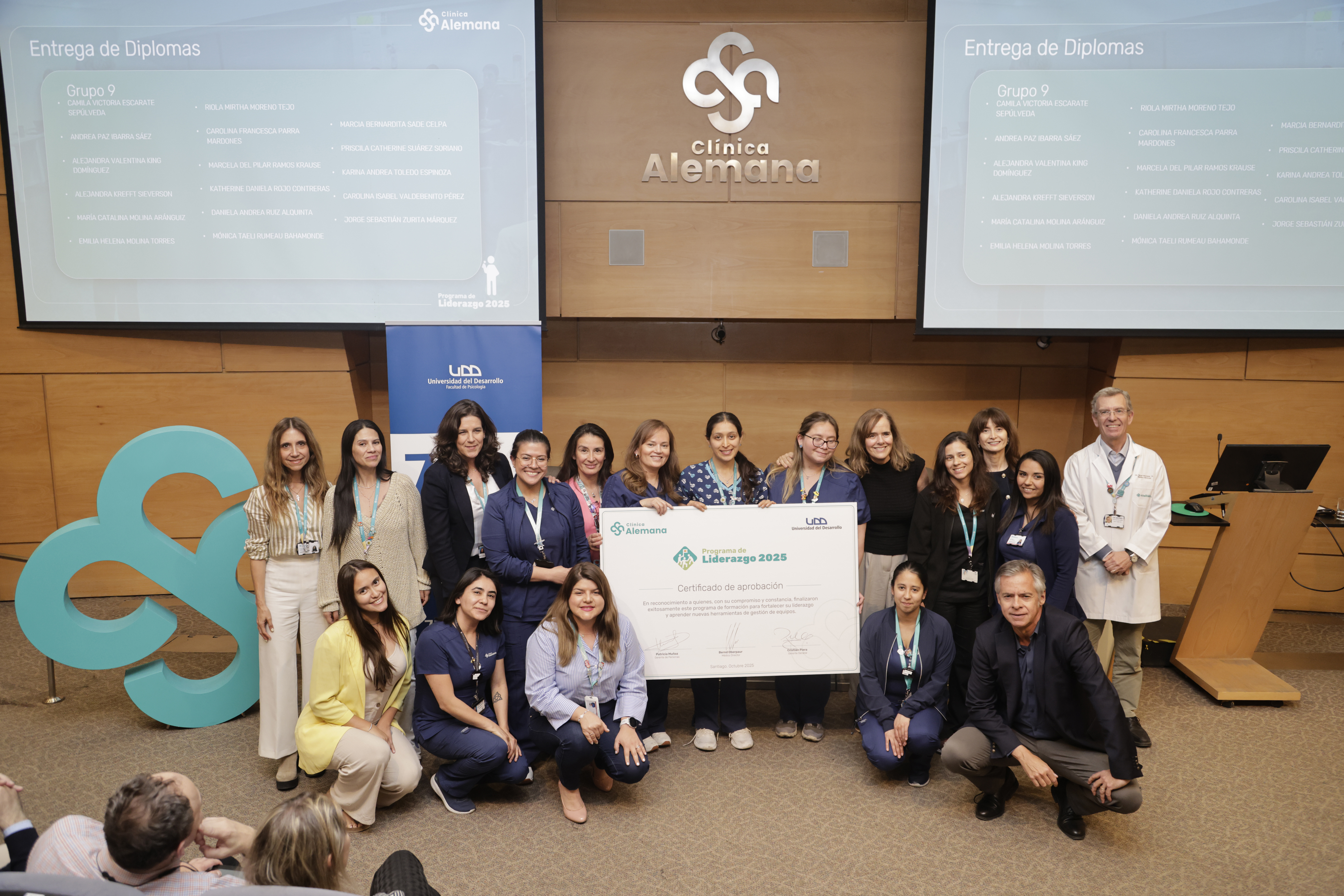 La Facultad de Psicología UDD y Clínica Alemana de Santiago (CAS) concluyeron la segunda versión del Programa de Liderazgo 2025, en el cual 175 colaboradores de la Clínica fueron capacitados para ejercer un liderazgo centrado en las personas y en la excelencia en el servicio.