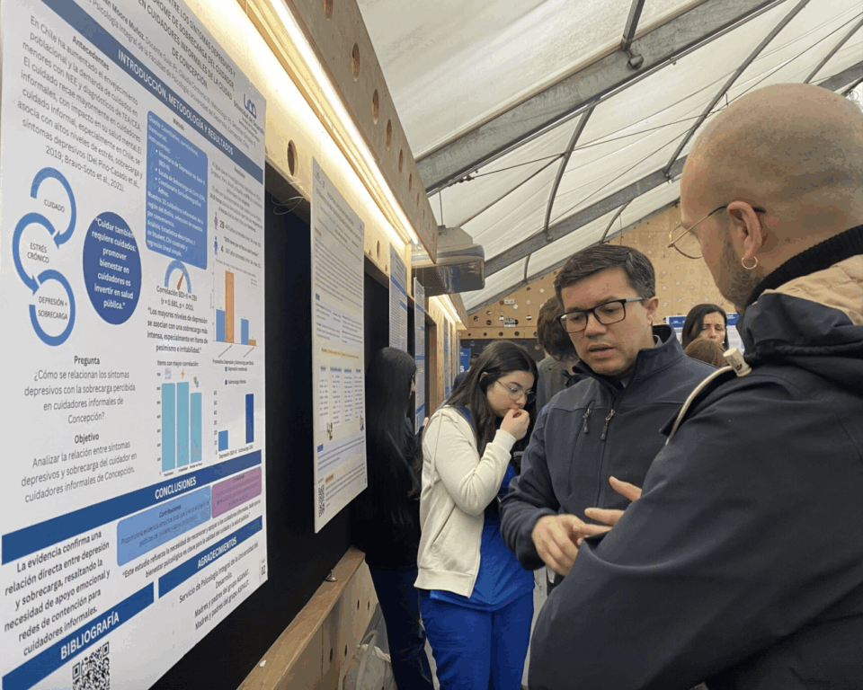 Uno de los expositores de la sede de Concepción, Dylan Orellana, estudiante de Enfermería que presentó el póster “Bienestar emocional y presencia de síntomas de depresión, ansiedad y estrés en estudiantes universitarios de la región del Biobío”, señaló que “esta es una gran oportunidad para dar visibilidad a ciertas problemáticas que nos parecen interesantes, en nuestro caso a la salud mental”.