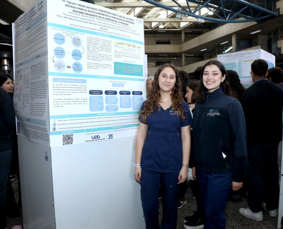 Durante ambas jornadas, autoridades, académicos y estudiantes recorrieron los stands instalados en el Patio de Aulas en el campus Rector Ernesto Silva Bafalluy (Santiago) y en el Espacio UDD del campus Ainavillo (Concepción), compartiendo experiencias, metodologías y resultados que reflejan el compromiso de la institución con el desarrollo de estudios colaborativos, interdisciplinarios y con impacto formativo.