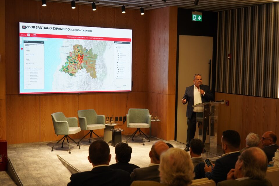 La presentación del profesor Alex Nohra, urbanista fundador de Nohra Lab Urb, permitió apreciar la funcionalidad del Visor Urbano Territorial, una herramienta que homologa las variables de las 1750 zonas urbanas comprendidas en los 52 planes reguladores de la Región Metropolitana, el cual incorpora datos de la expansión territorial de la ciudad.