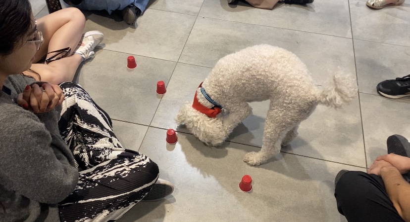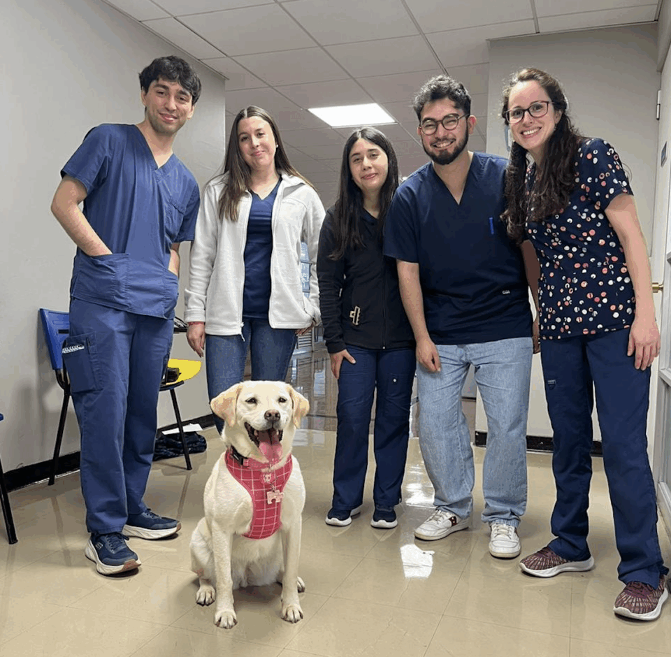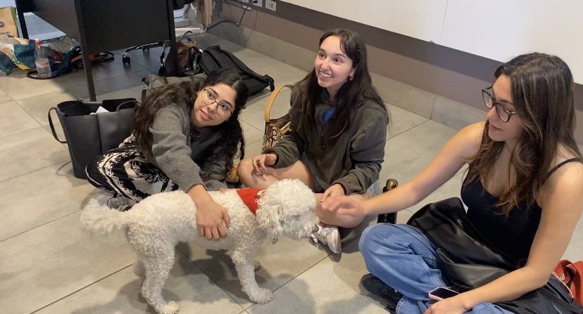 Ingo y Nanito son los dos perros de la Fundación Pitanga que visitaron, junto a sus entrenadores, el campus Rector Ernesto Silva Bafalluy (sede UDD Santiago) para participar en el estudio titulado: “Influencia de intervenciones asistidas con perros sobre los niveles de ansiedad y bienestar en estudiantes de la UDD”. Un proyecto que es liderado por Francisca Cuevas, psicóloga investigadora del Instituto de Bienestar Socioemocional (IBEM) de la Facultad de Psicología, que consistió en la interacción de los estudiantes con los caninos, realizando principalmente una actividad lúdica en la cual compartieron en grupos junto a los animales y realizaron una relajación previa al examen que tenían que rendir.