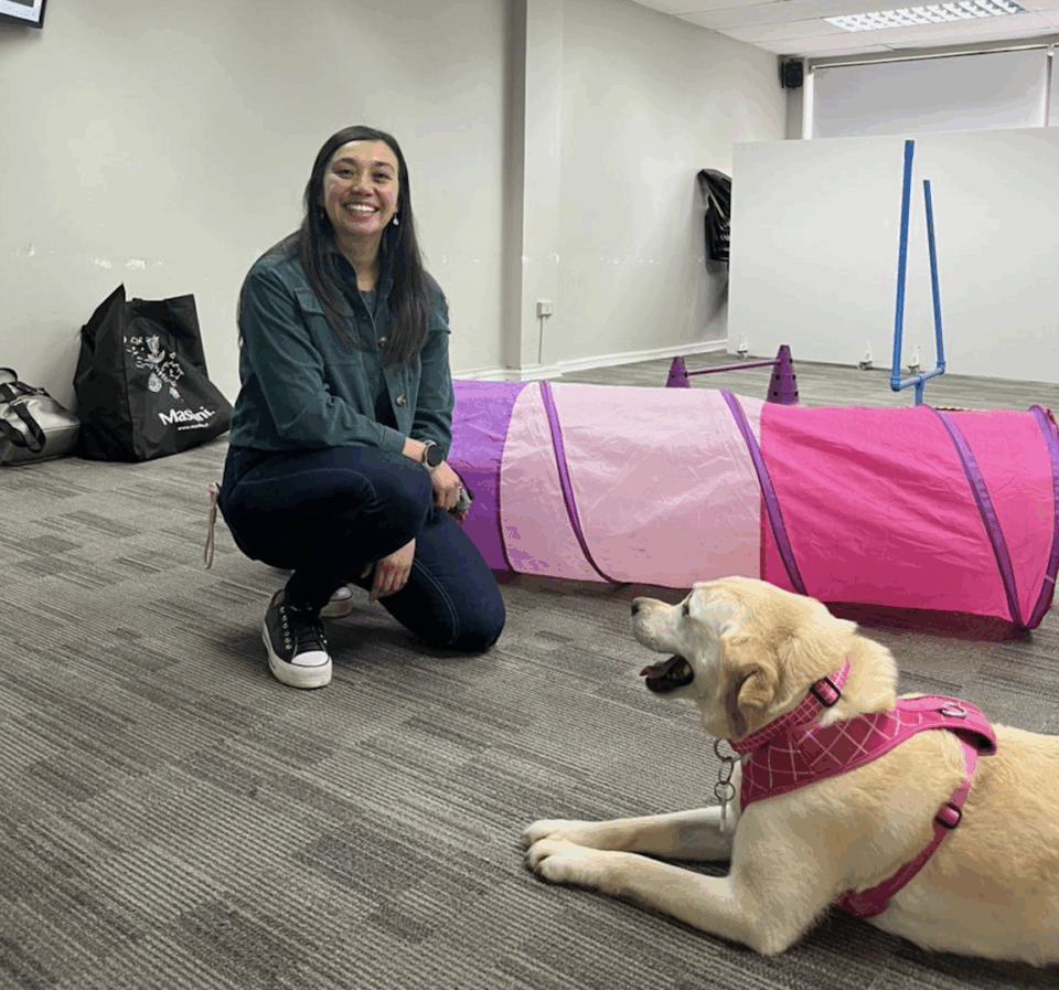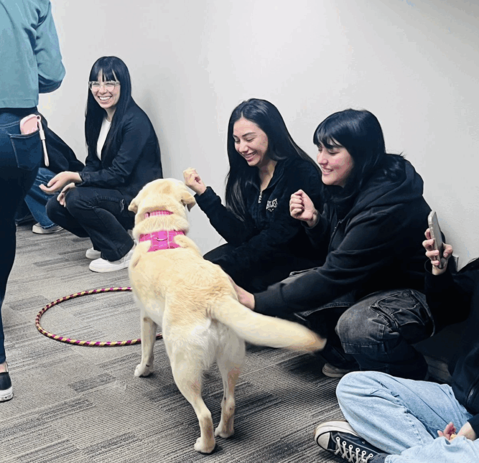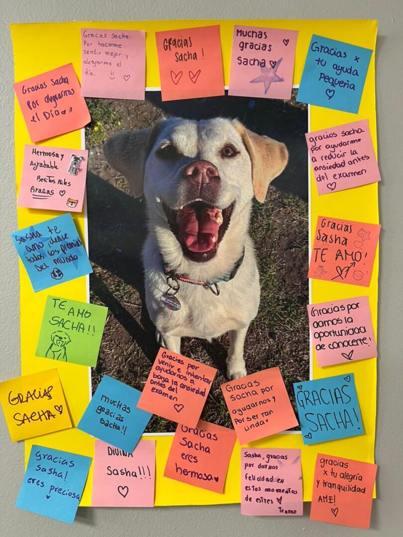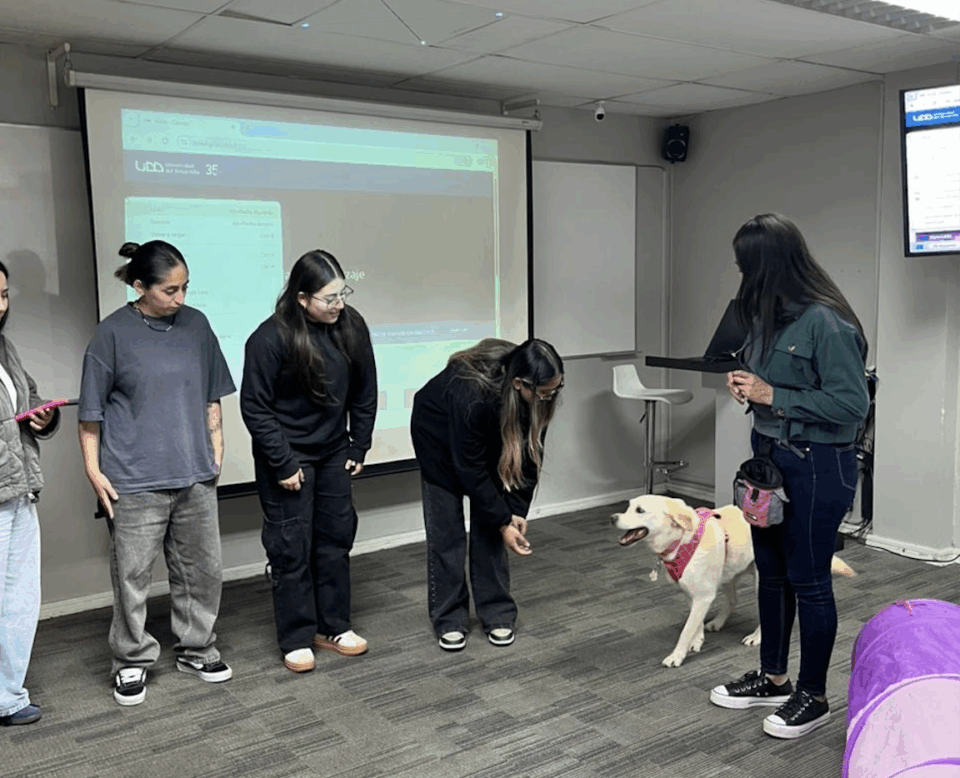 Perros entrenados buscan disminuir la ansiedad de los alumnos