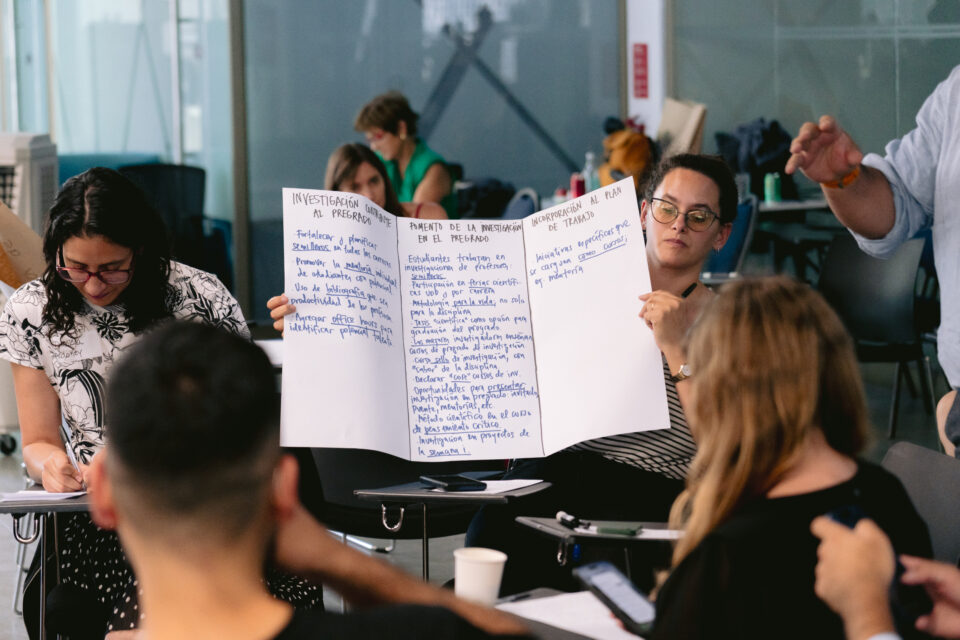 La jornada continuó durante la tarde con un espacio de co-creación, en el que participaron más de 60 investigadores, organizados en 10 mesas de trabajo temáticas, lideradas por integrantes de la Vicerrectoría de Investigación y Doctorados. En ellas se abordaron temas estratégicos para el desarrollo de la investigación en la UDD, tales como docencia y formación de pre y postgrado, gestión de la investigación aplicada, adjudicación y rendición de fondos externos, internacionalización, fondos internos e incentivos, e interdisciplina.