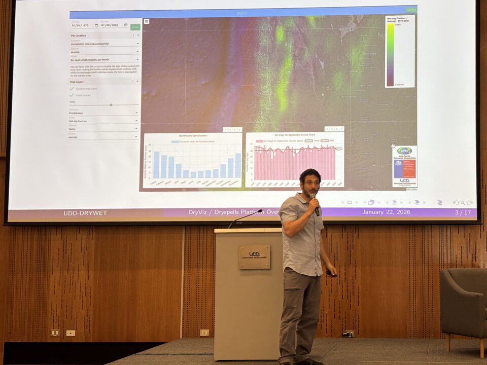La presentación de la plataforma se dio en el “Workshop Internacional APEC Spatio-Temporal Prediction of Dry Spells and Water Deficit Risks”, cuyo objetivo fue fortalecer las capacidades para la gestión del riesgo hídrico y la toma de decisiones, mediante la integración de información climática y enfoques de ciencia-política. Allí, durante dos días, se reunieron representantes APEC de Filipinas, Indonesia, Perú y Malasia en las dependencias de la UDD, para conformar mesas de trabajo y experimentar con dryspells.xyz.
