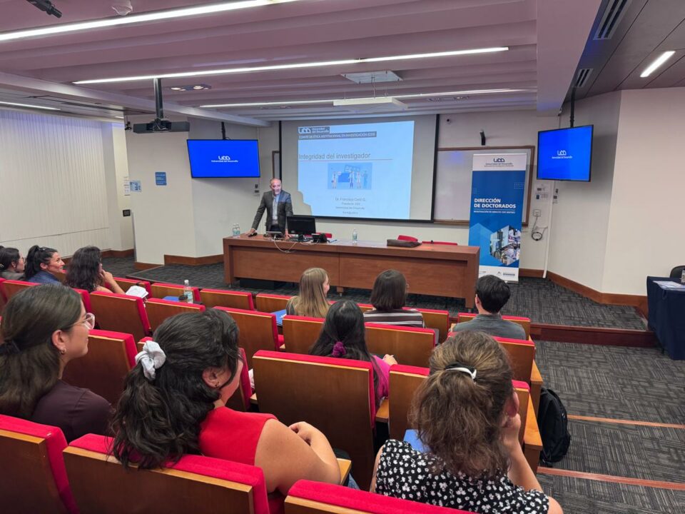 También se reforzó la importancia de la ética e integridad en la investigación a través del Dr. Francisco Ceric, presidente de la Comisión de Ética Institucional en Investigación, quien destacó principios como honestidad, responsabilidad, imparcialidad y buena gestión científica, pilares fundamentales para la formación doctoral.
