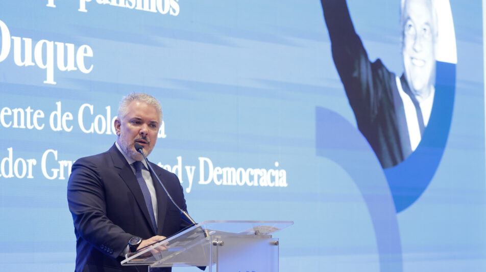 El ex presidente Duque, en representación del Grupo Libertad y Democracia, expuso sobre ‘Democracia y unidad frente a los populismos’ afirmando que liberales, libertarios y conservadores son incapaces de articularse para trabajar entre sí. “Desde una visión que supo recoger lo mejor de las tres corrientes y entiende el valor del centro político como lo hizo Sebastián Piñera, les decimos a quienes quieren promover el narcisismo de las pequeñas diferencias que no lo van a lograr, porque vamos a seguir buscando instrumentos de diálogo y coincidencias (,,,) Nosotros seguiremos defendiendo la economía de mercado, reivindicando una sociedad que merece políticas sociales para cerrar las brechas, promoviendo la fraternidad entre empleadores y empleados, asumiendo la seguridad como valor público, la austeridad y eficacia en el Estado para poder darle al ciudadano confianza y transparencia. Y, por supuesto, cerrar todas aquellas ventanas que a veces se utilizan para colar ideas que buscan la destrucción y la fractura”.