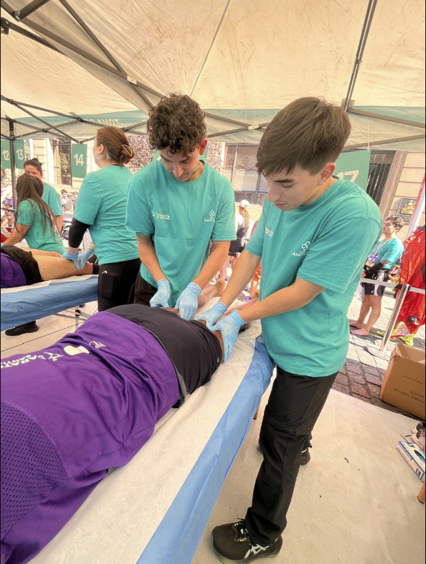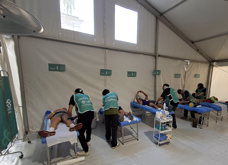 Una de las participaciones más destacadas fue la de los estudiantes y egresados de la carrera de Kinesiología, quienes integraron el staff oficial de rehabilitación del evento. Previamente capacitados y acompañados durante la maratón por kinesiólogos, entrenadores y masoterapeutas de Alemana Sport, los voluntarios pudieron aplicar sus conocimientos en un entorno real, exigente y de alto impacto, fortaleciendo sus competencias clínicas y su preparación profesional.